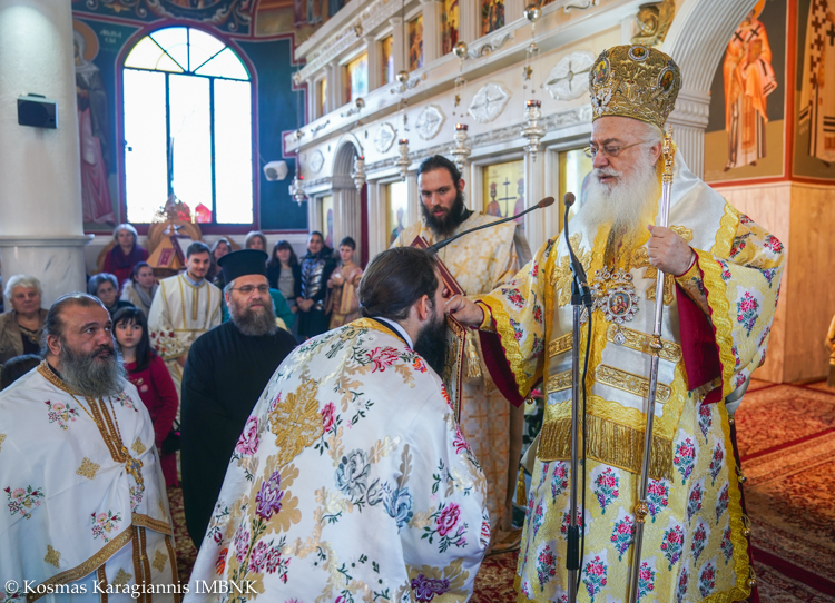 Στο τέλος της Θείας Λειτουργίας ο Σεβασμιώτατος χειροθέτησε σε Οικονόμο τον εφημέριο της ενορίας π. Κωνσταντίνο Νικολαΐδη.