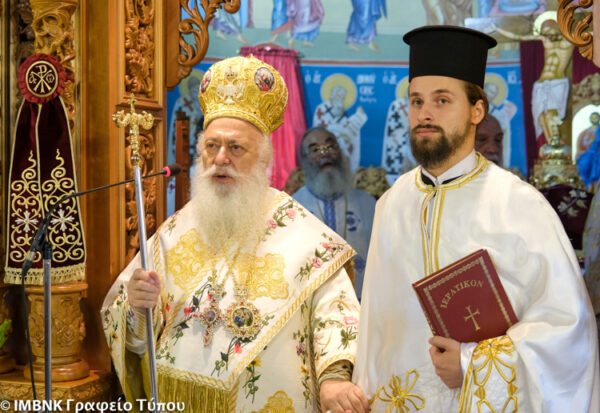 Στή διακονία σου θά σέ στηρίζουν πάντοτε οἱ δικές μου πατρικές εὐχές, πού σέ γνωρίζω παιδιόθεν, πού ἀκούμπησες στό ὠμόφορό μου τίς ἁμαρτίες, τίς ἀδυναμίες σου καί ἡ χάρη τοῦ Θεοῦ σέ κατηύθυνε διά τοῦ Ἐπισκόπου, ὅπως καί οἱ εὐχές ὅλων τῶν συμπροσευχομένων σήμερα πατέρων, τῶν κληρικῶν τῆς Ἱερᾶς Μητροπόλεώς μας καί ἰδίως τοῦ π. Γεωργίου ὁ ὁποῖος τόσα χρόνια σέ ἔχει βοηθό καί ὡς λαϊκό καί αὐτή τή χρονιά ὡς διάκονο, ἐπίσης τῶν οἰκείων, τῶν γονέων καί τῶν φίλων σου καί εὔχομαι ἀπό καρδίας, μέ τή χάρη τοῦ Θεοῦ καί τή συμπαράσταση τῆς εὐλαβοῦς σου συζύγου, τῆς Κατερίνας, νά ἀξιωθεῖς νά ἀποδειχθεῖς ἄξιος τῆς τιμῆς πού σοῦ κάνει σήμερα ὁ Θεός καί νά εὐαρεστήσεις ἐνώπιον του γιά νά ἀπολαύσεις καί σύ τόν μισθό τῶν πιστῶν καί φρονίμων οἰκονόμων του. Εἴσελθε εἰς τήν χαράν τοῦ Κυρίου γιά νά λάβεις τόν δεύτερο βαθμό τῆς ἱερωσύνης.