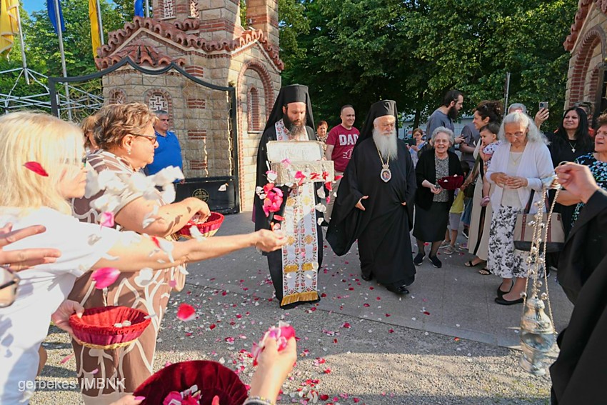 Την Τετάρτη 18 Ιουνίου το απόγευμα ο Σεβασμιώτατος Μητροπολίτης Βεροίας, Ναούσης και Καμπανίας κ. Παντελεήμων μετέφερε στην ενορία Ευαγγελισμού της Θεοτόκου στο Έσσλιγκεν της Γερμανίας αποτμήματα ιερών Λειψάνων του Αγίου Δημητρίου προκειμένου να συνεορτάσουν με την πανήγυρη της ελεύσεως του αντιγράφου της Παναγίας Σουμελά, κατόπιν προσκλήσεως του προϊσταμένου της ενορίας πρωτ. π. Μιχαήλ Νεονάκη.