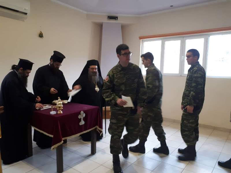 Ἀκολούθως, ἐπισκέφθηκε τό Στρατόπεδο τοῦ 228 Μ/Κ/ΤΕ, ὅπου τόν ὑποδέχθηκε ὁ Διοικητής τῆς 96 ΑΔΤΕ Ταξίαρχος κ. Παναγιώτης Κιμουρτζῆς, ὁ Διοικητής τοῦ 228Μ/Κ/ΤΕ κ. Δημήτριος Τσαφούλης, λοιποί Ἀξιωματικού Ὑπαξιωματικοί καί Ὁπλίτες μέ τούς ὁποίους συνομίλησε, εὐχήθηκε ἑορτίως καί προσέφερε γλυκά καί τευχίδια ὀρθοδόξου περιεχομένου.