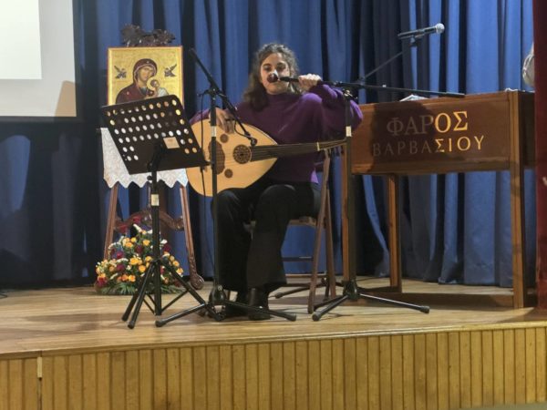 Συμμετείχαν στους ύμνους και τα τραγούδια: η χορωδία της σχολής βυζαντινής μουσικής της Ιεράς μας Μητροπόλεως με χοράρχη τον κ. Σταύρο Στείρο, το κατηχητικό του Ιερού Ναού Παναγίας Ευρετής με κατηχητή τον κ. Ιωάννη Βαγιάνο και η δεσποινίς Μαρκέλλα Παντελούκα.