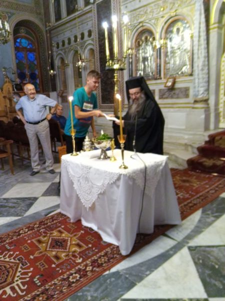 Δοξασμένο το όνομα του υπό των Αγγέλων αινουμένου Τριαδικού Θεού και μακαρία η ανάπαυση της ψυχής του ιδρυτού της Σχολής μακαριστού Μητροπολίτου Χίου Διονυσίου Μπαιρακτάρη για την πνευματική αυτή ευκαιρία που δίδεται στους ευσεβείς εφιεμένους να σπουδάσουν την ιερή τέχνη του Αγίου Ρωμανού του Μελωδού και του Αγίου Μηνά του Καλικελάδου.