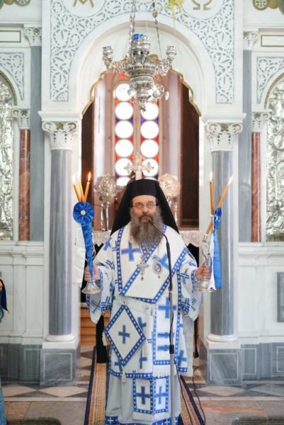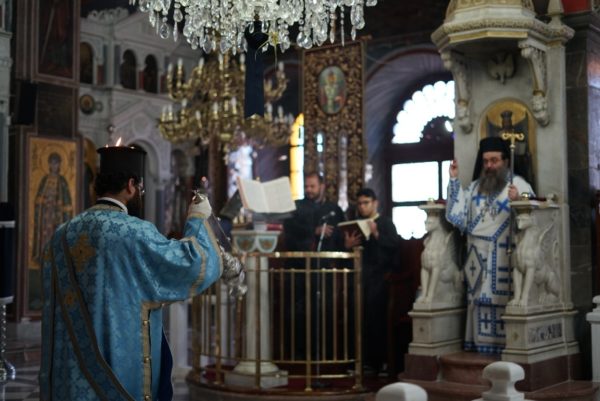 Το γεγονός αυτό αναμνήσθηκε σήμερα η Ιερά Μητρόπολις Χίου, Ψαρών και Οινουσσών στον Ιερό Καθεδρικό Ναό Αγίου Γεωργίου Βροντάδου κατά την Αρχιερατική Θεία Λειτουργία ιερουργούντος του Σεβασμιωτάτου Μητροπολίτου Χίου, Ψαρών και Οινουσσών κ. Μάρκου, μετά του Εφημερίου Πρωτοπρεσβυτέρου π. Ιωάννου Κοντού και του Αρχιδιακόνου π. Αποστόλου Λάρδα, ενώ έψαλαν ο Πρωτοψάλτης του Ιερού Ναού κ. Βασίλειος Χαμέτης και ο Λαμπαδάριος του Ιερού Ναού κ. Πέτρος Μαθιούδης.