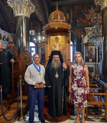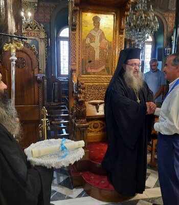 Απονομή σταυρού Αγίου Ισιδώρου από τον Μητροπολίτη Χίου Μάρκο