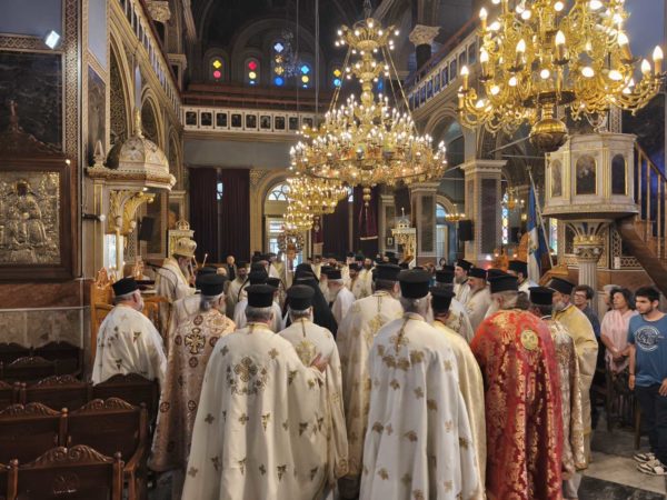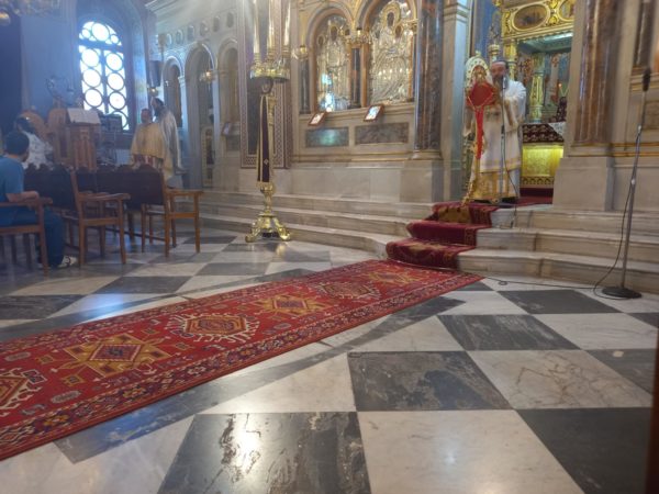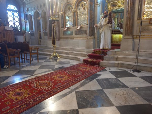 Συγκινητικός, επίσης, και ο ασπασμός όλων των Κληρικών, πριν από το “Πιστεύω” και η με τάξη και αθρόα προσέλευση μετάδοση της Θείας Κοινωνίας.