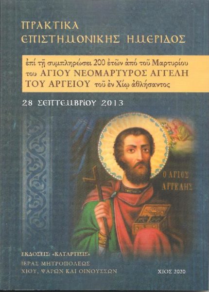 Με την Χάρη και την βοήθεια του Θεού, ο Οποίος «έδωκεν ανθρώποις επιστήμην ενδοξάζεσθαι εν τοις θαυμασίοις Αυτού» (Σοφία Σειράχ λη΄.6), η Ιερά Μητρόπολις Χίου, Ψαρών και Οινουσσών εξέδωσε τα Πρακτικά του Επιστημονικού Συνεδρίου διά τον Άγιον Νεομάρτυρα Αγγελήν τον Αργείον τον ιατρόν, τον εν Χίω αθλήσαντα, το οποίο διωργάνωσε με την συμμετοχή Ακαδημαικών, Πανεπιστημιακών Καθηγητών και άλλων Επιστημόνων το σωτήριον έτος 2013, επί τη συμπληρώσει διακοσίων ετών άπό του σεπτού μαρτυρίου αυτού (3 Δεκεμβρίου 1813).