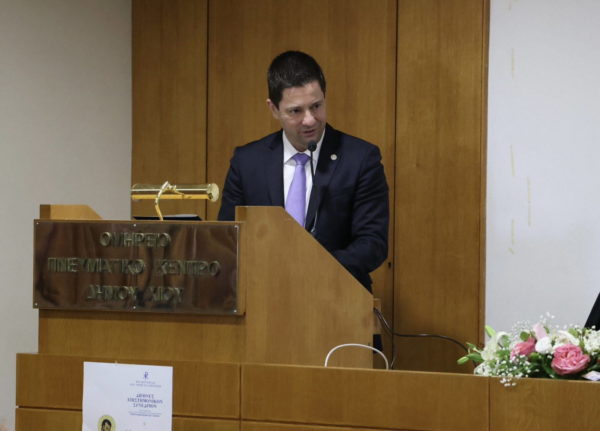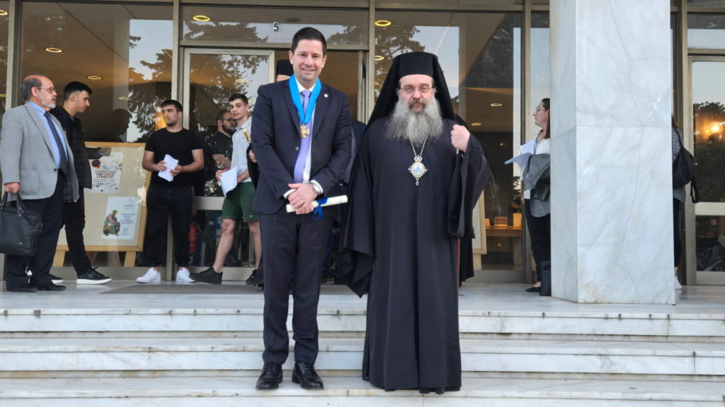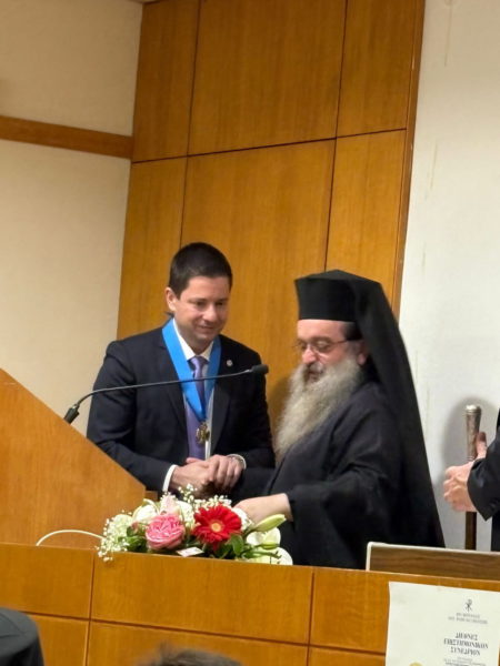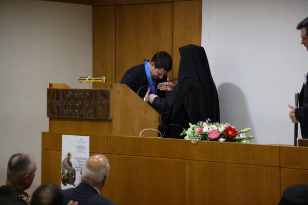Στην συνέχεια ο αξιότιμος Πρύτανης του Πανεπιστημίου Αθηνών και καθηγητής της Ιατρικής Σχολής κος Γερ. Σιάσος στην εναρκτήριο ομιλία του παρουσίασε το θέμα: Οι δια θαυμάτων θεραπείες του Ιησού στο κατά Μάρκον ευαγγέλιο”. Τέλος, ο Σεβασμιώτατος ευχαριστώντας τον κο Πρύτανη για την ευλογητή παρουσία του, εις ενδειξιν τιμής και ευγνωμοσύνης του απένειμε τον Σταυρό του Αγίου Ισιδώρου.