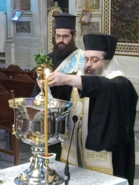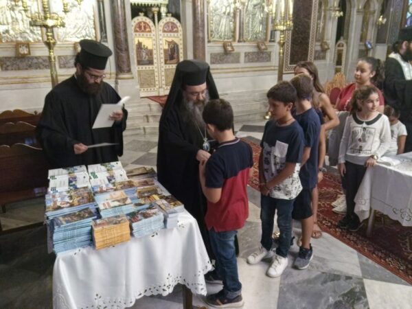 Μετά τήν ἀκολουθία τοῦ Ἁγιασμοῦ, ὁ Σεβασμιώτατος ἐξήγησε στά παιδιά μας τὴν σημαντική προσφορά τοῦ Κατηχητικοῦ Σχολείου στοὺς Ὀρθόδοξους Χριστιανούς καὶ ἰδιαιτέρως στὰ παιδιά. Ὅλοι ὅσοι εἶναι βαπτισμένοι Ὀρθόδοξοι Χριστιανοί ἔχουν τὴ δυνατότητα νὰ μάθουν στὸ Κατηχητικό Σχολεῖο τὶ πιστεύουν. Νὰ γνωρίσουν τὴν ὀρθόδοξη Χριστιανική Διδασκαλία, τὴν Παλαιά καὶ τὴν Καινή Διαθήκη, τὴ ζωή, τὸ ἔργο καὶ τὴ διδασκαλία τοῦ Κυρίου μας Ἰησοῦ Χριστοῦ, τῆς Παναγίας καὶ τῶν Ἁγίων μας. Θὰ ἀντλήσουν δύναμη στὸν ἀγῶνα τους νὰ ζοῦν βίο ἐνάρετο καὶ χριστιανικό καὶ νὰ πετύχουν τὸ στόχο τῆς ζωῆς τους νὰ γίνουν ἅγιοι.