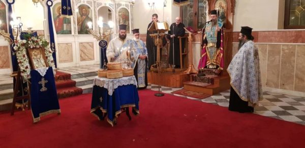 Ακολούθησε η αρτοκλασία κατά την οποία ο Σεβασμιώτατος δεήθηκε για τους εορτάζοντες και προσφέροντες «τα Δώρα ταύτα», ιδιαίτερα δε για τους ναυτικούς μας, τους ανέργους, τους εμπόρους , την νεολαία, τον στρατό, τους ασθενείς, και μάλιστα για το ιατρικό, νοσηλευτικό, εθελοντικό και ερευνητικό προσωπικό που αγωνίζονται για τη θεραπεία και αντιμετώπιση της ασθενείας του κορωνοϊού.