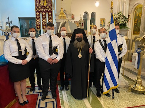 Με βαθιά θρησκευτική κατάνυξη και υψηλό εθνικό φρόνημα τελέσθηκε ο Μέγας Αρχιερατικός Εσπερινός στον Ι. Ν. Ευαγγελιστρίας Μουτσαίνης Βροντάδου Χίου χοροστατούντος του Σεβασμιωτάτου Μητροπολίτη Χίου κ. Μάρκου πλαισιουμένου υπό ικανού αριθμού ιερέων και διακόνων και παρόντων εκπροσώπων των στρατιωτικών και πολιτικών αρχών, καθώς και σπουδαστών της ΑΕΝ ΜΗΧΑΝΙΚΩΝ ΧΙΟΥ με την σημαία της σχολής.