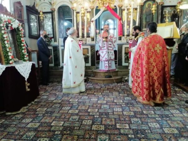 Ιερουργός στην Θεία Ευχαριστία ο Σεβ. Μητροπολίτης Χίου κ. Μάρκος μαζί με τους Πρωτοπρεσβυτέρους Γεώργιο Πουλιά και Ιωάννη Μουσά, καθώς και τον Αρχιδιάκονο Απόστολο Λάρδα.