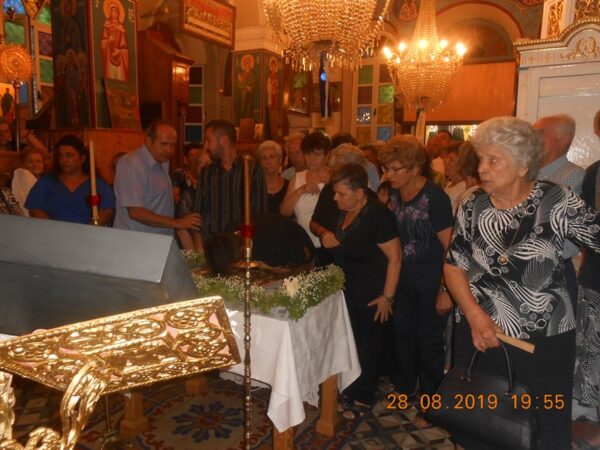 Τό πρωΐ τῆς 28ης Αὐγούστου ἐτελέσθη ὀ Ὄρθρος καί ἡ Θεία Λειτουργία καί πρό καί μετά τήν μεσημβρίαν ἐψάλησαν Ἱεραί Παρακλήσεις τοῦ Ἁγίου Ἰωάννου, ἐνῶ πλήθη πιστῶν συνέρρεαν στόν Ἱερό Μητροπολιτικό Ναό πρός προσκύνησιν καί συμμετοχήν στίς Ἱερές Ἀκολουθίες.