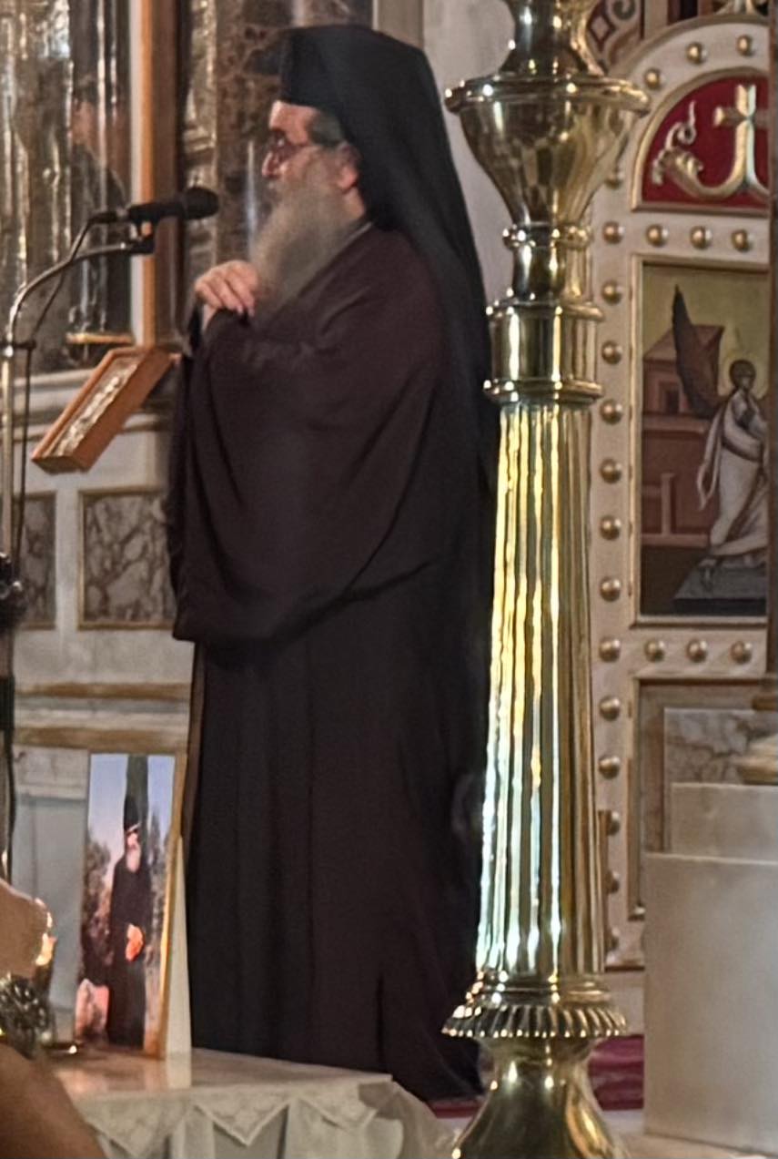Με λόγια απλά αλλά βαθιά, ο Σεβασμιώτατος αναφέρθηκε στις κεφαλαιώδεις αρετές του μοναχού, στην Υπακοή, Παρθενία και Ακτημοσύνη. Συνεχίζοντας είπε ότι οι βασικές αρετές της μοναχικής ζωής μπορούν να εφαρμοστούν και στον έγγαμο βίο, μετατρέποντας την ακτημοσύνη σε ελεημοσύνη, μένοντας πιστοί οι σύζυγοι στο μυστήριο του Γάμου και υπακούοντας ο ένας στον άλλον.