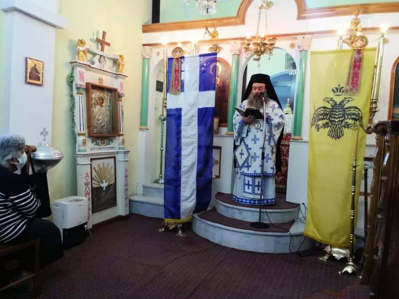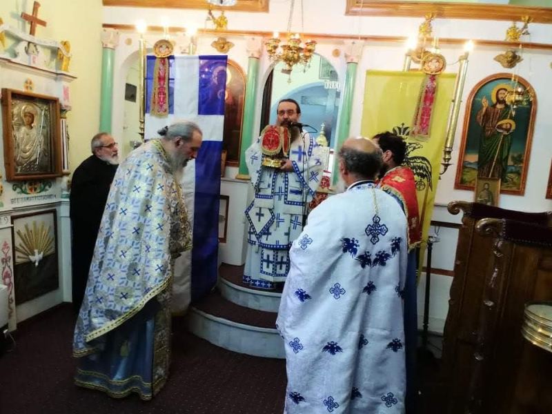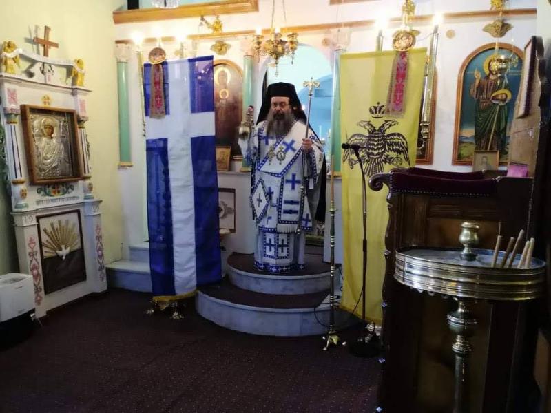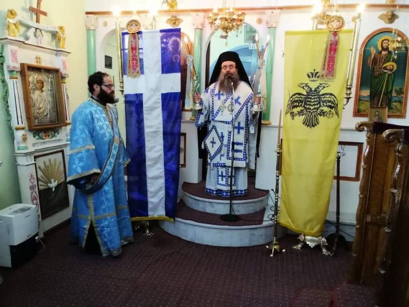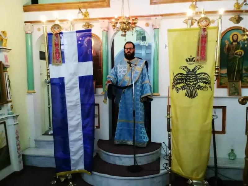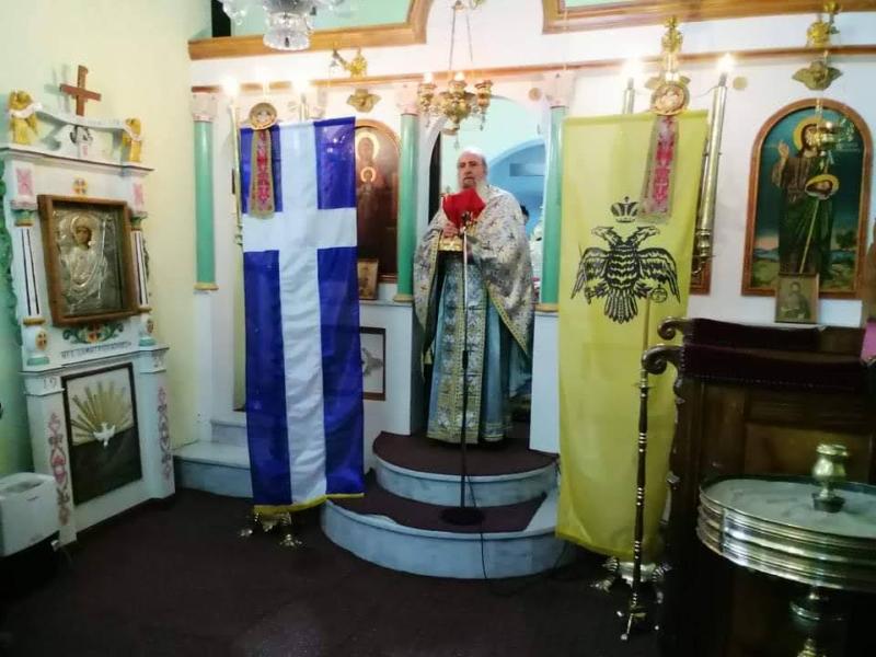 Ο Ιερός Ναός ήταν σημαιοστολισμένος με Βυζαντινά και Ελληνικά λάβαρα, ως συμβολισμό της αδιαπτώτου ιστορικής συνέχειας του Ελληνισμού και της συζεύξεως του με την αλήθεια και την αγάπη της Χριστιανικής Διδασκαλίας.