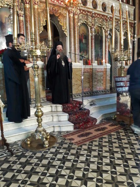 Μετά τό πέρας τῆς Ἱερᾶς Ἀκολουθίας ὁ Χῖος Ποιμενάρχης μίλησε ἁπλᾶ καί πρακτικά στά παιδιά καί στούς γονεῖς μέ ἀναφορές στήν Ἁγία Γραφή (Σοφία Σειράχ, Ἀπόστολος Παῦλος) καί στούς Πατέρες τῆς Ἐκκλησίας (Μέγας Βασίλειος) περί τῆς ἐπιμελείας, τῆς παιδείας καί τῆς ἐπιστήμης, τούς προσέφερε εὐλογίες καί δῶρα καί τούς δεξιώθηκε συζητώντας μαζί τους μέ παραδείγματα ἀπό διαφόρους τομεῖς τοῦ ἐπιστητοῦ, διαβεβαιώνοντας ὅτι θά εὑρίσκονται πάντοτε στίς προσευχές του.