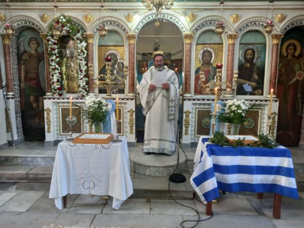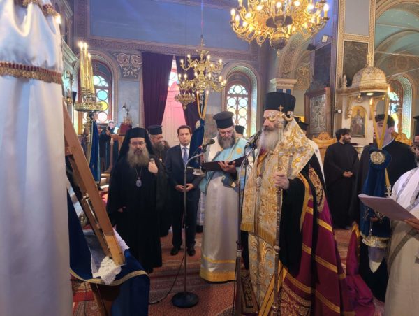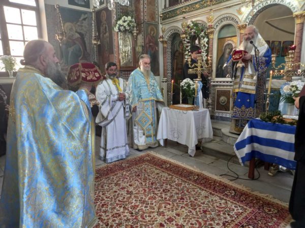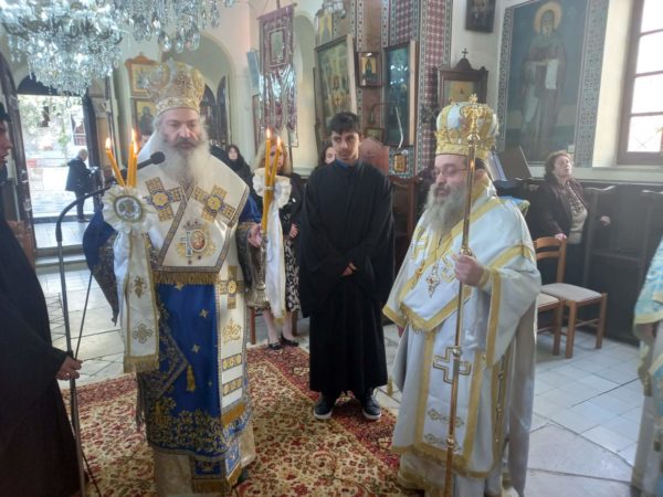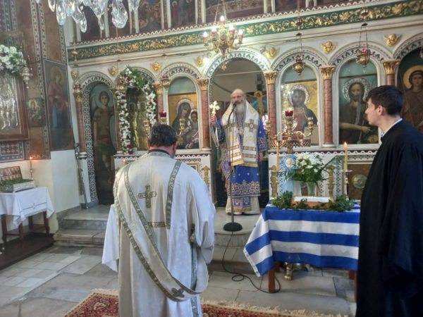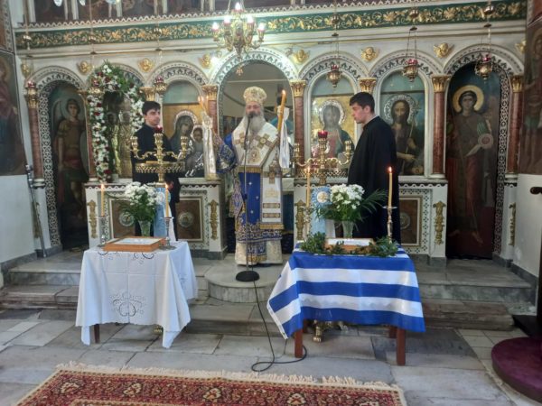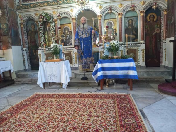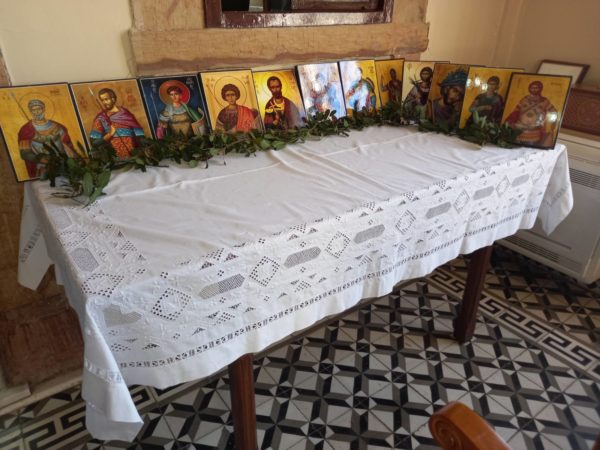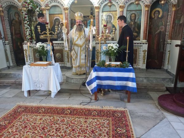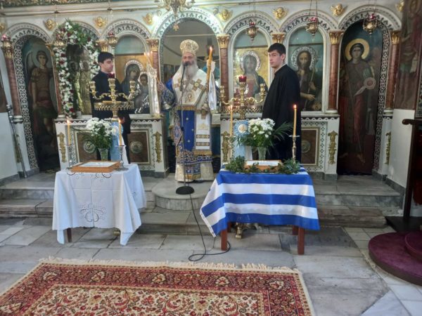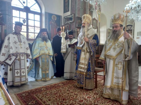 Με δισαρχιερατικό συλλείτουργο στην Ιερά Μονή Αγίου Μηνά ξεκίνησαν οι εορτασμοί για τους Πολιούχους και τα Ελευθέρια της Χίου. Συλλειτούργησαν ο Θεοφιλέστατος Επίσκοπος Αχελώου κ. Νήφων με τον Σεβασμιώτατο Μητροπολίτη Χίου, Ψαρών και Οινουσσών κ. Μάρκο τιμώντας και την σύναξη των στρατιωτικών αγίων και τελώντας μνημόσυνο της ΑΘΗΝΑΣ ΜΑΡΤΙΝΟΥ, μητέρας του Μεγάλου Ευεργέτη της Μονής κ. Αθανασίου Μαρτίνου, καθώς και του αειμνήστου Στρατηγού Μιχάλη Κωσταράκου. Μετά την Θείαν Λειτουργίαν ο Θεοφιλέστατος επεσκέφθη το Μουσείο της Σφαγής της Χίου στον χώρο της Μονής.