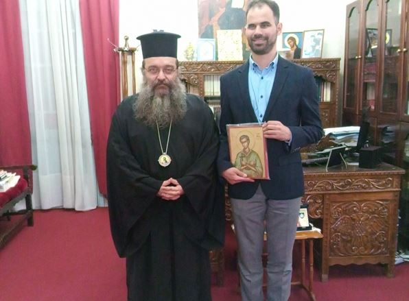 Ὁ Μητροπολίτης Χίου ἐδώρησε στὸν κ. Πρόεδρο εἰκόνες Ἁγίων καί εὐχήθηκε νὰ συνεχίσει γιὰ περισσότερο διάστημα ἀπὸ τὴν ἴδια θέση τὴν ἐνάσκηση τὴν καθηκόντων του.