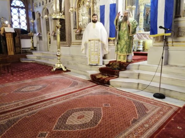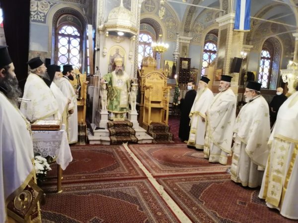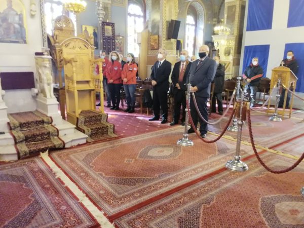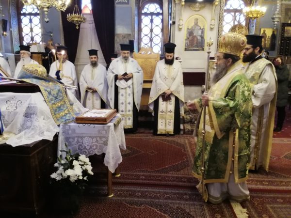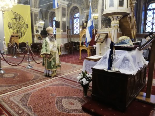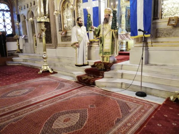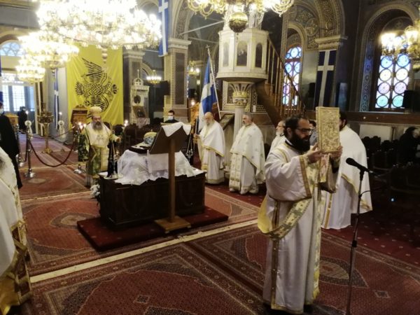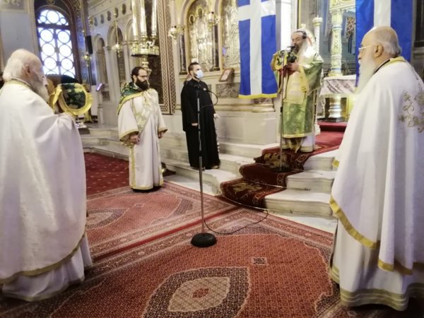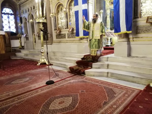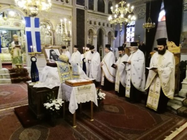 Προσήλθομεν λοιπόν σήμερον άπαντες εις τον Ιερόν τούτο και περικαλλή Μητροπολιτικόν Ναόν, αφ ένος μεν δια να τιμήσωμεν την μνήμη των σήμερον εορταζομένων Αγίων, αφ ετέρου δε δια να προσευχηθώμεν διά τον στοργικόν Πατέρα και Ποιμενάρχη ημών. Δι εκείνων ο οποίος υπήρξεν ψυχή τε και σώματι ένθερμος υπερασπιστής του ευσεβούς Έθνους ημών και του Φιλοχρίστου Στρατού, τον οποίον εξαιρέτως υπερηγάπα, αφού ήτο οστούν εκ των οστέων του και σάρξ εκ της σαρκός του,δια τον ακλόνητον φρουρόν των της Εκκλησίας δογμάτων και απαρασάλευτον τηρητήν της πίστεως. Δια τον της νεότητος φίλον, δια τον του γήρατος στερρόν στηριγμόν, δια τον της αγωνίας του ανέργου συμμεριστήν, δια τον του καθ οιονδήποτε τρόπον χειμαζομένου ανθρώπου υποστηρικτήν.