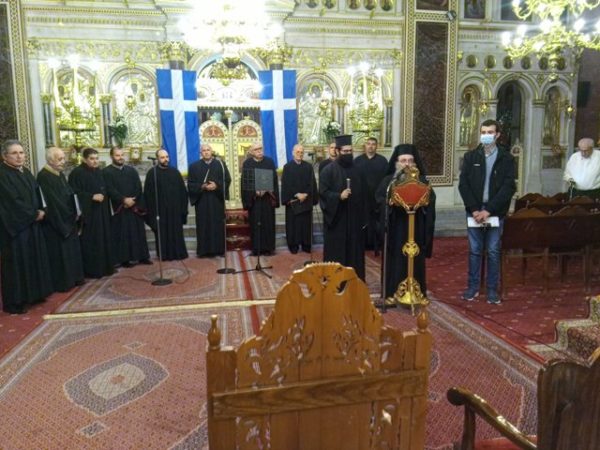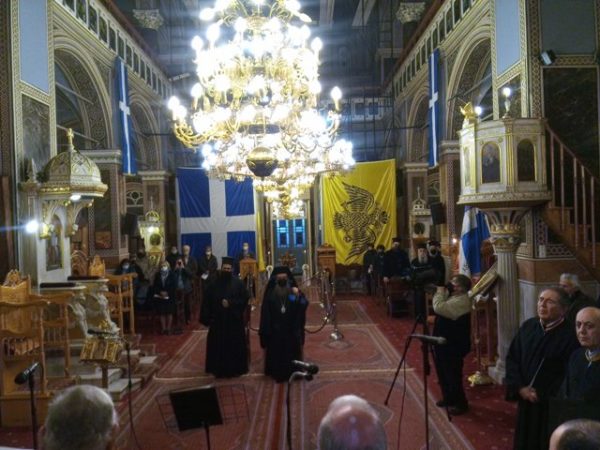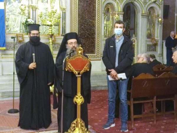 Χαιρετίζων την εκδήλωση ο πάλαι Αρχιδιάκονός του και νυν Διάδοχός του αναφέρθηκε στο εθνικό φρόνημα του Γέροντός του, απαραίτητο στα “όρια της Πατρίδος γής”.