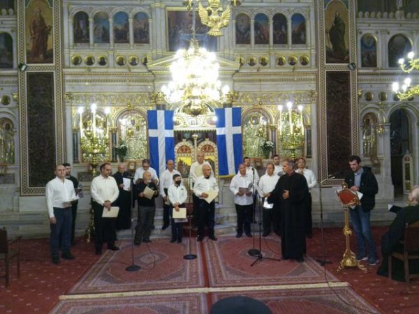 Ημείς δέ πάντες οι περιλειπόμενοι, ο Ιερός Κλήρος, οι Άρχοντες ημών, ο φιλόχριστος στρατός, ο πιστός του Κυρίου λαός καί πάντες ημείς οι πολυμερώς καί πολυτρόπως, γευσάμενοι καί απολαβόντες τάς χάριτας τάς ευεργεσίας καί τάς Αρχιερατικάς Αυτού ευλογίας, ας ικετεύσωμεν τόν Θείον της Εκκλησίας Δομήτορα, τόν Κύριον ημών Ιησούν Χριστόν, όπως αναπάυση τήν μακαρίαν ψυχήν Εκείνου μετά των Αγίων καί Δικαίων. Αμήν.