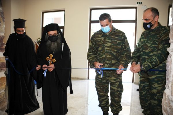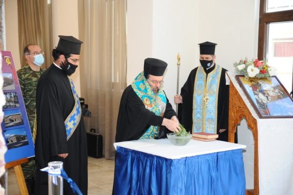 Εν συνεχεία μετά από πρόσκληση του κ. Αρχηγού ο Σεβ. Χίου μετέβη και ετέλεσε τον Αγιασμό των εγκαινίων του νέου χώρου της Λέσχης Αξιωματικών της 96ης ΑΔΤΕ.