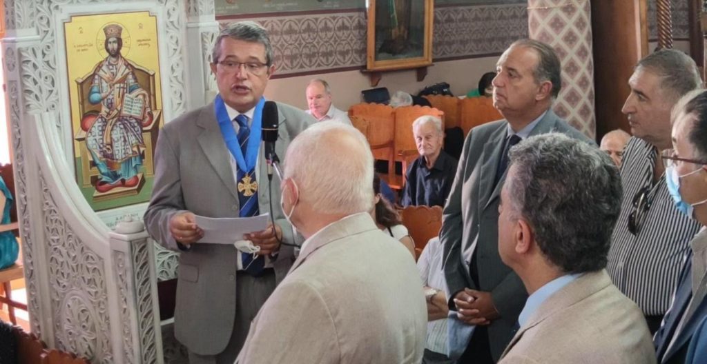 Ο κ. Βαρβούνης ανέπτυξε χθες το θέμα «Η Μικρασιατική Καταστροφή και η Γενοκτονία του Μικρασιατικού Ελληνισμού». Πριν την ομιλία του, ο Σεβασμιώτατος Μητροπολίτης Χίου, Ψαρών και Οινουσών κ. Μάρκος τίμησε τον Καθηγητή Μαν. Βαρβούνης με την ανώτατη τιμητική διάκριση της τοπικής Εκκλησίας, τον χρυσό σταυρό του αγίου μεγαλομάρτυρος Ισιδώρου, για το σύνολο του έργου του.