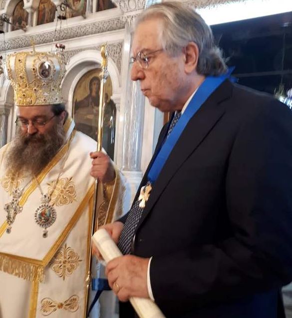 Μὲ βαθιὰ συγκίνηση, φόρεσε καὶ παρέλαβε τὸν Σταυρὸ τοῦ Ἁγίου Ἰσιδώρου καὶ δήλωσε ὅτι τὰ λόγια τοῦ Σεβασμιωτάτου Χίου, (καὶ ἡ ἀπονομὴ τοῦ Σταυροῦ) εἶναι ὑψίστη τιμὴ γιὰ ‘κεῖνον καὶ τὴν ἐκλαμβάνει ὡς ἐξίσου σημαντικὴ καὶ βαρύνουσα, ὅπως καὶ τὸν Χρυσὸ Σταυρὸ τοῦ Ἀποστόλου Παύλου ποὺ τοῦ ἔχει ἀπονεμηθεῖ ἀπὸ τὴν Ἱερὰ Σύνοδο. Πρόσθεσε δέ ὅτι ἀντιλαμβάνεται ὅτι αὐτὸ ποὺ ἄγγιξε τὸν Σεβασμιώτατο Μητροπολίτη Χίου ὡς Φοιτητῆ εἶναι ὅτι ὁ Καθηγητὴς του ὁμολογοῦσε τὴν Πίστη του στὸ Χριστὸ μέσα στὶς Διδακτικὲς Αἴθουσες τοῦ Πανεπιστημίου.
