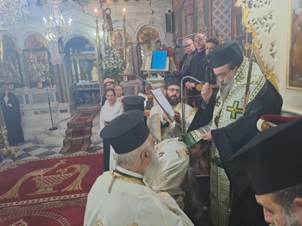 Ακολούθησε η “Δέησις” για τον Ιατρικό Σύλλογο Χίου, μετά την οποία ο Σεβασμιώτατος, κατόπιν επαινετικής προσλαλιάς και περιγραφής της χριστομιμήτου διακονίας που πρέπει να ακολουθεί εχειροθέτησε σε Πνευματικό της Ιεράς Μητροπόλεως Χίου, Ψαρών και Οινουσσών τον Αιδεσιμ. Πρωτοπρ. κ. Αντώνιο Καραμιχάλη, Εφημέριο του Ιερού Ναού Ταξιαρχών Μπατζακλή Κάμπου.