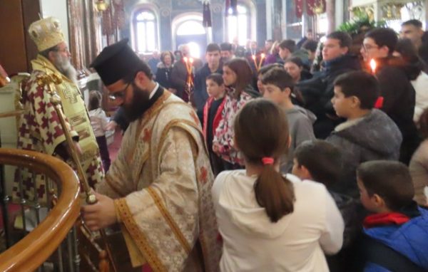 Απευθυνόμενος στις μαθήτριες και τους μαθητές, ο Σεβασμιώτατος αναφέρθηκε στο νόημα και το περιεχόμενο της Θείας Λειτουργίας, ανέλυσε τα τελούμενα στη διάρκειά της, υπογράμμισε το ρόλο του Επισκόπου ο οποίος «ίσταται εν μέσω των πιστών εις τύπον και τόπον Χριστού» και έκανε αναφορά στους συμβολισμούς των επισκοπικών αμφίων.