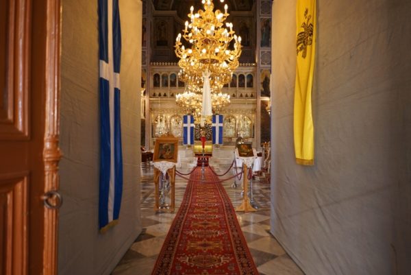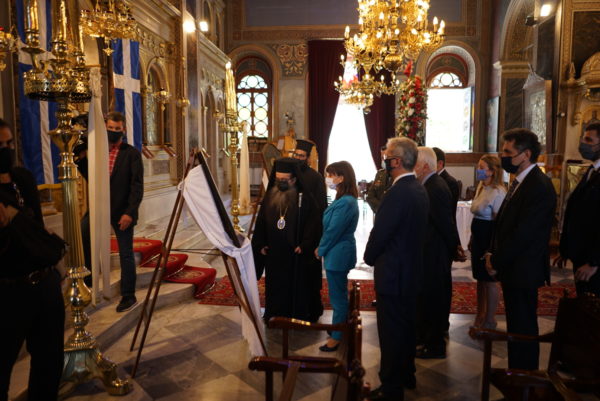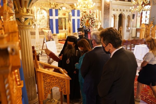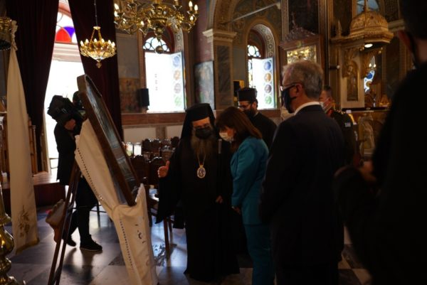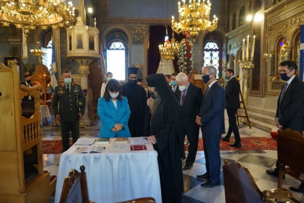 Κατά την επίσκεψιν της κ. Προέδρου εις την έκθεση περί του Ευαγγελιστού Μάρκου στον Ιερό Μητροπολιτικό Ναό Χίου παρευρέθησαν εκπρόσωποι των Πολιτικών και Στρατιωτικών Αρχών.