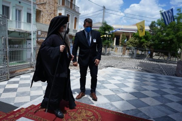 Με αισθήματα αναστάσιμης χριστιανικής αγάπης και ακριτικής ελληνικής περηφάνειας σας υποδεχόμεθα στα ανατολικά θαλάσσια σύνορα της Ελληνικής Δημοκρατίας και της Ευρωπαικής Ενώσεως, στο νησί μας, το νησί των Αγίων και των ηρώων, του Ομήρου και του Κοραή, των μαστιχοφόρων σχίνων και της πρυτανευούσης ανά την οικουμενην ελληνικής εμπορικής ναυτιλίας και σας προσφέρουμε ως αντίδοτο της τιμής ένα καλάθι με άγρια φυτά από την ελληνική νησίδα της Παναγιάς, ενός από τα 46 νησιά και βραχονησίδες της Ιεράς Μητροπόλεώς μου, επί των οποίων η Ελλάς είχε απ’ αιώνων, έχει και θα έχει έως της συντελείας των αιώνων απαράγραπτα αποκλειστικά κυριαρχικά εθνικά δικαιώματα».