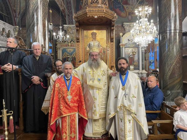 Ο Σεβασμιώτατος Μητροπολίτης Χίου, Ψαρών και Οινουσσών κ. Μάρκος, για την επέτειο των 30 ετών από της εις Διάκονον Χειροτονίας του από τον μακαριστό Μητροπολίτη Χίου Διονύσιο, απένειμε, όπως και στον Άξιο Αρχιδιάκονό του π. Απόστολο Λάρδα, κατά την Θεία Λειτουργία του Πάσχα, το ανώτερο Παράσημο της Ιεράς Μητροπόλεως Χίου, τον χρυσούν Σταυρόν του Πρωτομάρτυρός της Αγίου Ισιδώρου.