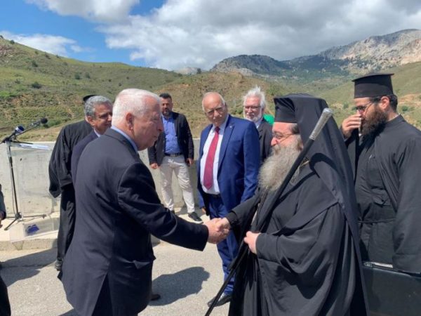 «Όταν αναλάβαμε ως Περιφερειακή Αρχή, βρήκαμε να έχει εμφιλοχωρήσει στους φίλτατους πολίτες της Χίου, η αμφιβολία περί της σταθερότητας του φράγματος. Με τον τότε Αντιπεριφερειάρχη, αποφασίσαμε να αντιμετωπίσουμε το θέμα. Διότι εάν δεν ήταν σταθερό το φράγμα , δεν θα είχε νόημα να τελειώσουν οι εργασίες. Σκέφτηκα τότε τον διαπρεπέστατο Καθηγητή του Πολυτεχνείου κ. Γκαζέτα, για να μελετήσει τη σταθερότητα του φράγματος. Απευθύνθηκα σ’ αυτόν και με χαρά ανέλαβε να διερευνήσει την στατικότατα του φράγματος. Αφού συνεργάσθηκε και με ομολόγους του από το Πολυτεχνείο Πάτρας και μετά από τις μελέτες που έκανε, κάποια στιγμή μας απάντησε ότι το φράγμα είναι ευσταθές. Ήταν το πρώτο σίγουρο βήμα που κάναμε. Όμως θέλαμε να έχουμε και την σίγουρη ευλογία του Κυρίου. Φωνάξαμε τον Σεβασμιότατο να δώσει τις ευλογίες του, στις απόψεις μας περί ευστάθειας του φράγματος. Σήμερα κάνουμε αυτό. Απομένει ένα 10 με 20% του έργου. Όμως ήδη το φράγμα άρχισε να μαζεύει νερό», σημείωσε.