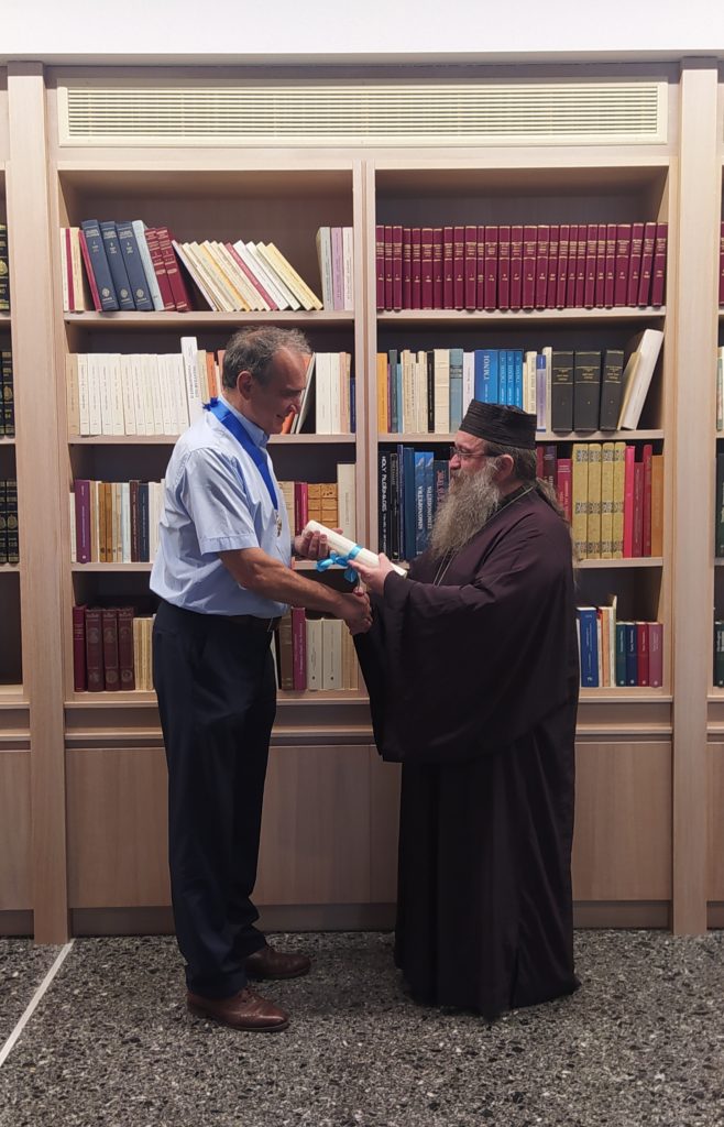 Στο πέρας της συναντήσεως ο Φιλόλογος Μητροπολίτης Χίου κ. Μάρκος απένειμε στον κ. Κόλια το Παράσημο του Σταυρού του Αγίου Ισιδώρου, τόσο διότι πρωτοστάτησε στη διοργάνωση του Επιστημονικού Συνεδρίου γιά τον Κωνσταντίνο Άμαντο (2016), όσο και για το ότι μερίμνησε ως Διευθυντής Ιστορικών Ερευνών του Εθνικού Ιδρύματος Ερευνών γιά την δωρεά πολλών επιστημονικών τεκμηρίων στη Βιβλιοθήκη “Άγιος Αγαπητός”.