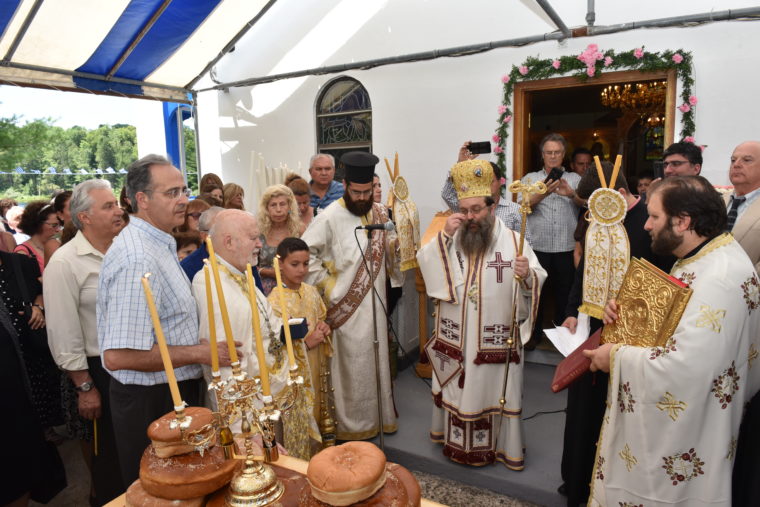 Τό Σάββατο 13 Ἰουλίου ἐτέλεσε, μέ τήν εὐλαβική συμμετοχή ἑκατοντάδων Χιωτῶν τῆς Ἀμερικῆς καί ἄλλων Ὁμογενῶν, τόν Ἀρχιερατικό Μέγα Ἑσπερινό στόν Ἱερό Ναό Ἁγίας Μαρκέλλης Upstate καί τήν Κυριακή 14 Ἰουλίου τόν Ὄρθρο καί τήν Ἀρχιερατική Θεία Λειτουργία μέ Ἀρτοκλασία.