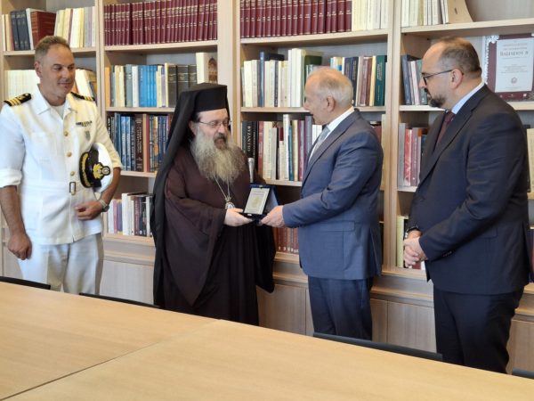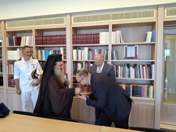 Τέλος αντηλλάγησαν αναμνηστικά και ο Σεβασμιώτατος προσκάλεσε τον Γενικό Γραμματέα στις εκδηλώσεις της Ιεράς Μητροπόλεως για την Ναυτική Εβδομάδα.