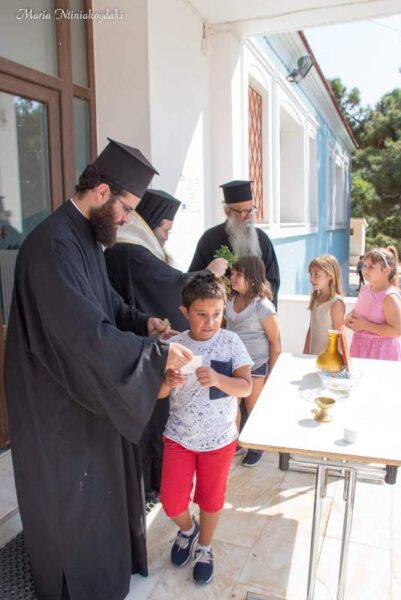 Στά μεγαλύτερα παιδιά ὁ Χιώτης Ἱεράρχης παρομοίωσε τήν σχολική χρονιά μέ ἕνα ναυτικό ταξίδι, πού καπετάνιο ἔχει τόν Χριστό, πλήρωμα τίς πνευματικές καί ἠθικές ἀξίες, πορεία τίς γνώσεις καί ἐπιστροφή τό ἴδιο λιμάνι ἀπ’τό ὁποῖο ξεκίνησε. Στό τέλος ὁ Σεβασμιώτατος εὐλόγησε ξεχωριστά ὅλα τά παιδιά καί συζήτησε διεξοδικά μέ τούς ἐκπαιδευτικούς.