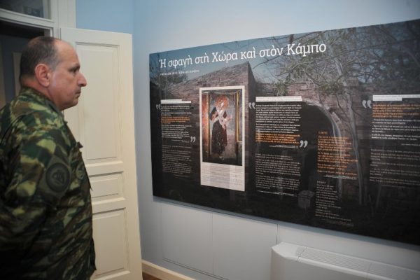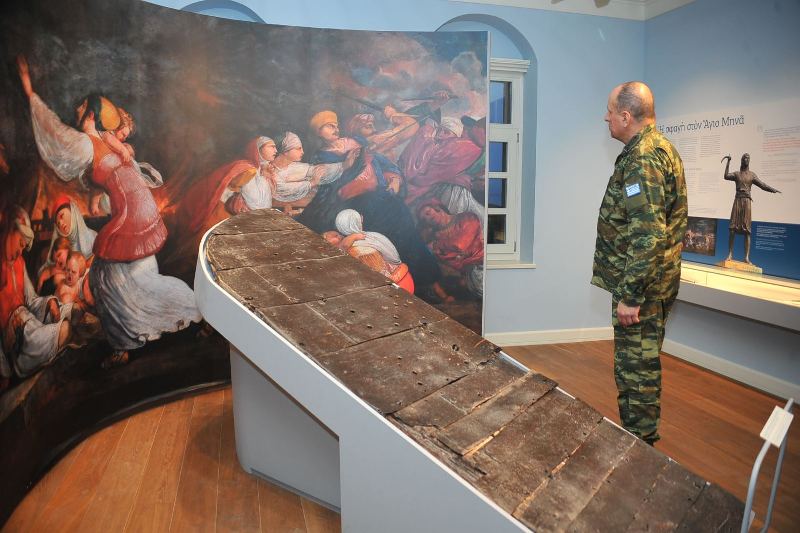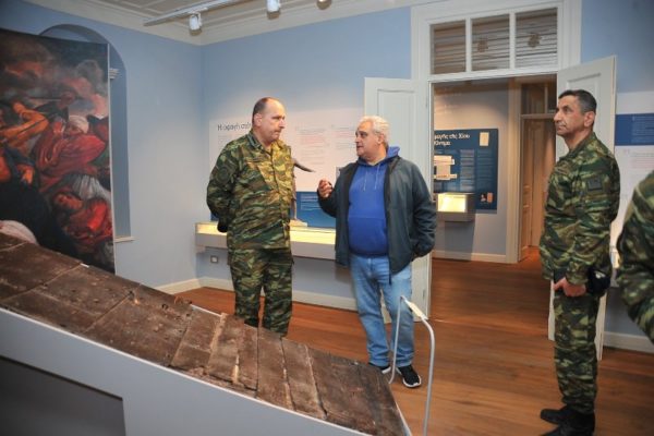 Ακολούθησε, με ιερή συγκίνηση, η επίσκεψή τους στο ολοκαυτωθέν από τους Τούρκους το 1822 και αιματόστικτο μέχρι σήμερα Καθολικό της Ιεράς Μονής, ως και στο Οστεοφυλάκειο του Ιερού Παρεκκλησίου των Αγίων Τεσσαράκοντα Μαρτύρων, με τις προθήκες μέρους των πάλλευκων ιερών οστών των σφαγιασθέντων και στη συνέχεια, στο Ιστορικό Μουσείο των Σφαγών της Χίου “ΙΣΤΟΡΙΗΣ ΑΠΟΔΕΞΙΣ ΗΔΕ”, το οποίον εγκαινιάστηκε στις 10 Νοεμβρίου 2021, και αποτελεί προσφορά του κ. Αθανασίου Μαρτίνου, Πολιτικού Διοικητού του Αγίου Όρους, και της συζύγου του κ. Μαρίνας Μαρτίνου, διά της δωρεάς των μέσω του Ιδρύματος “ΑΙΓΕΥΣ”.