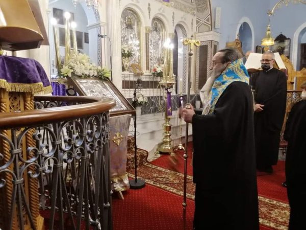 Εμφανώς συγκινημένος ο Χιώτης Ιεράρχης ανέγνωσε τους Χαιρετισμούς με χαρακτηριστική τη φράση “Χαίρε δι ης σφαγείς μικρασιατικού ελληνισμού καταπίπτουσιν”.