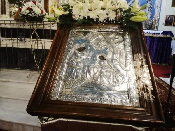 Στο Ναό φυλάσσεται η ιερή εικόνα του Ευαγγελισμού, αγιογραφηθείσα το 1901 στον Τσεσμέ (Κρήνη) Μ. Ασίας, την οποία οι πρόγονοι των ενοριτών έφεραν στην Χίο ως πρόσφυγες στην μικρασιατική καταστροφή.
