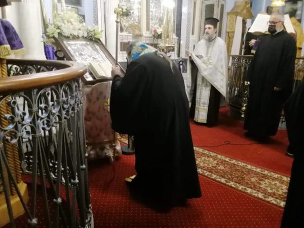 Στο πλαίσιο της μνήμης των 100 χρόνων από τη Μικρασιατική Καταστροφή, ο Σεβ. Μητροπολίτης Χίου κ. Μάρκος τέλεσε την Παρασκευή 1 Απριλίου την Δ’ στάση των Χαιρετισμών στον Ι. Ν. Αγ. Γεωργίου Φρουρίου.