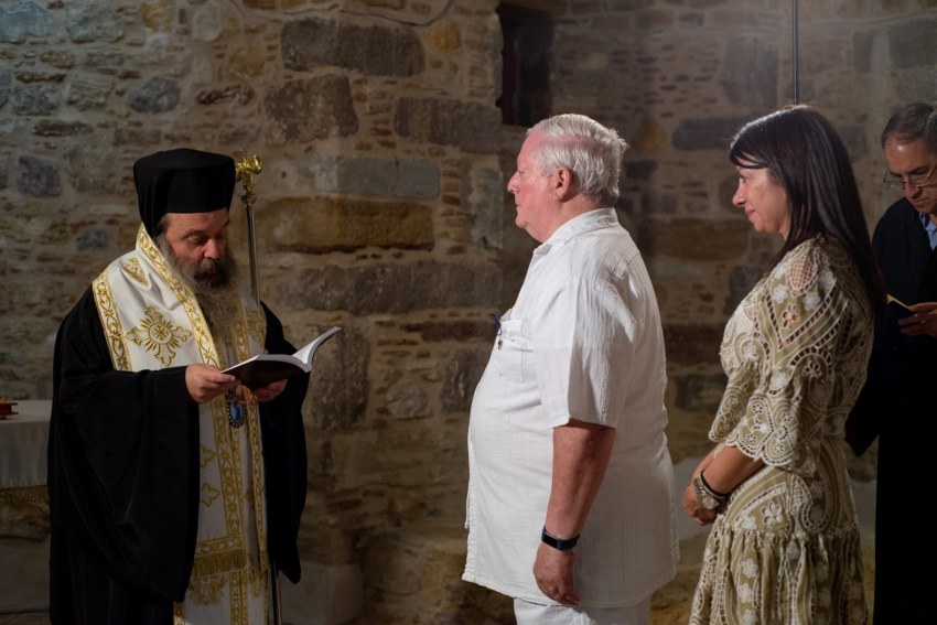 Στον ιερό και αγιασμένο αυτό χώρο, ένα από τα αρχαιότερα μνημεία του Αιγαίου Πελάγους, ο Μητροπολίτης Χίου, Ψαρών και Οινουσσών κ. Μάρκος βάπτισε τον μέχρι σήμερα Μεθοδιστή κ. Joel Whitehead δίδοντας του το όνομα Ιωάννης – Ισίδωρος.