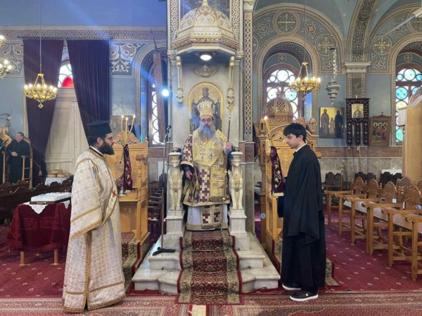 Μετά την Θ. Λειτουργία ο Σεβασμιώτατος δεξιώθηκε τις τοπικές αρχές, τις κυρίες των φιλανθρωπικών σωματείων και την νεότητα στο γραφείο του.