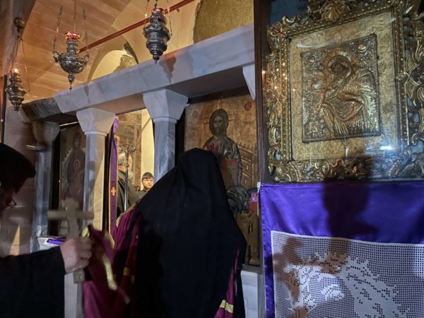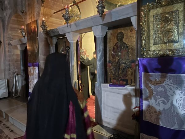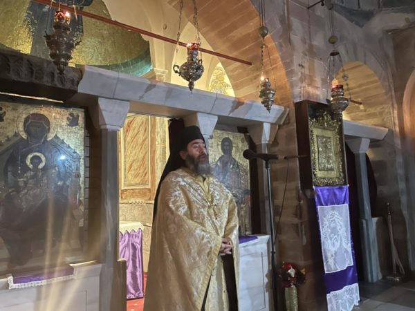Στο πέρας της Θ. Λειτουργίας έγινε η λιτάνευση των Ιερών Εικόνων κατά την οποία οι σχετικές απαγγελίες έγιναν προ της λάρνακος με τα λείψανα του Ιερομάρτυρος Αγίου Πλάτωνος Μητροπολίτου Χίου και προ της προθήκης με τα άμφια του Αγίου Νεκταρίου.