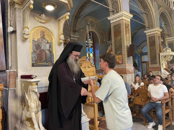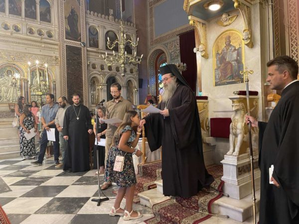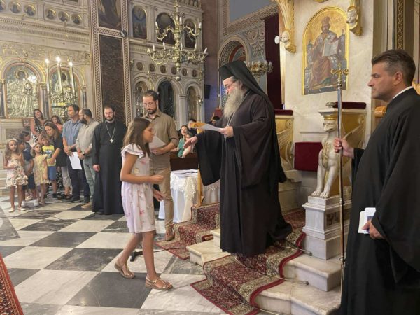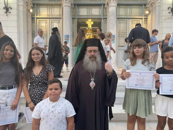 Επίσης ο Σεβασμιώτατος επέδωσε επαίνους σε εκατοντάδες παιδιά των Κατηχητικών Σχολείων, που αρίστευσαν στα μαθήματα τους.
