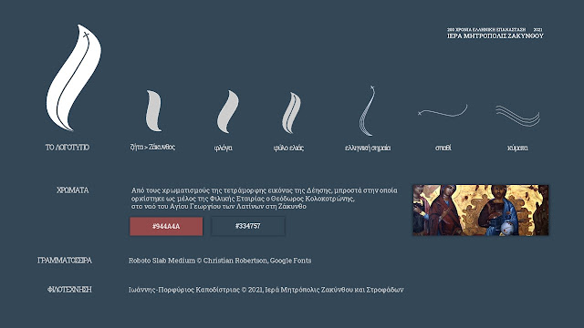 Το εορταστικό αυτό logo θα συνοδεύει όλες τις δράσεις της Μητροπόλεως που αφορούν στις σπουδαίες προσωπικότητες που έθρεψε το νησί της Ζακύνθου και πρωταγωνίστησαν στους αγώνες για την Εθνική Παλιγγενεσία.