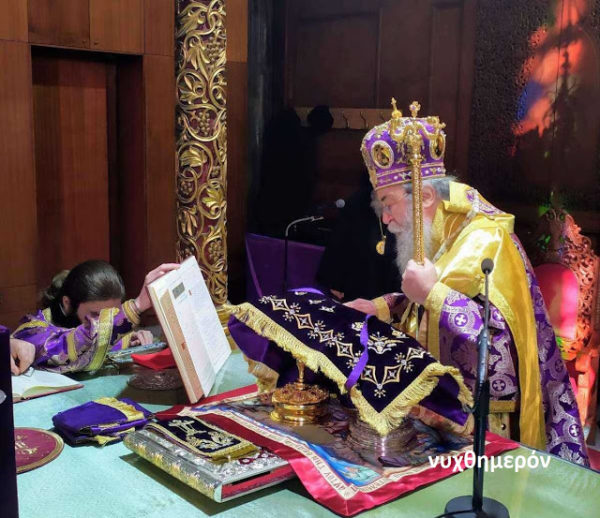 Παρέστη συμπροσευχόμενος ο Σεβ. Μητροπολίτης Δωδώνης κ. Χρυσόστομος. Η Ευχαριστιακή Σύναξη έγινε κεκλεισμένων των θυρών, λόγω των απαγορεύσεων εκκλησιασμού πιστών έναντι κορωνοϊού.