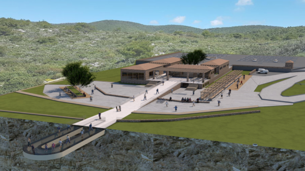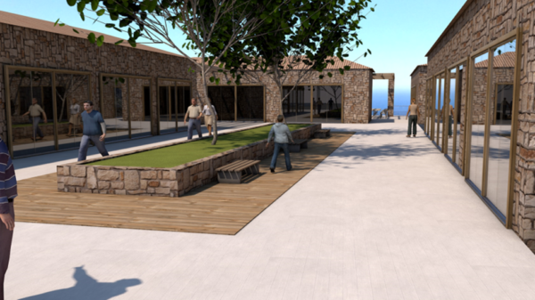 5)Προχωρώντας συναντάμε το κεντρικό κτίριο του θεματικού πάρκου. Στο κτίριο θα στεγάζεται το εκδοτήριο εισιτηρίων, γραφείο εξυπηρέτησης πελατών, χώροι υγιεινής του κοινού και καταστήματα πώλησης ειδών συναφών με το θέμα του πάρκου αλλά και της Ζακύνθου όπως σουβενίρ, κτλ.