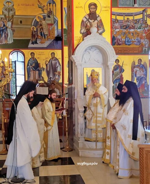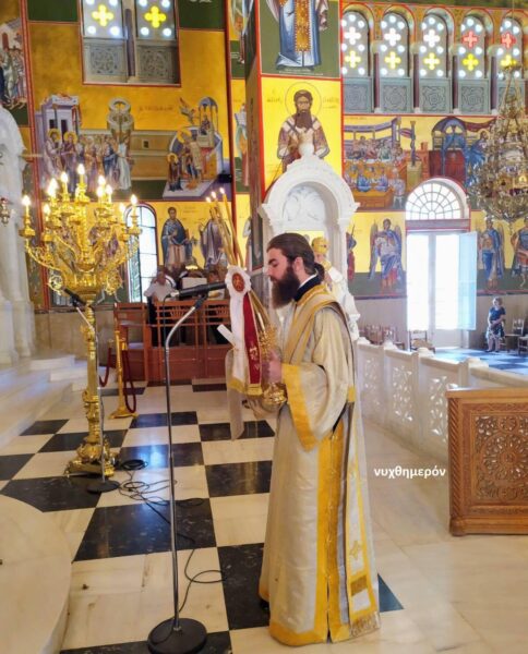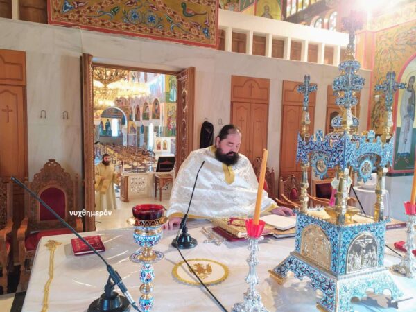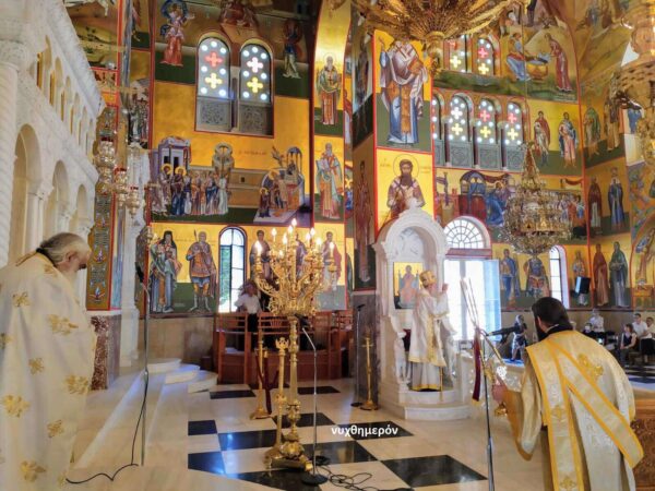 Η θεία Λειτουργία έγινε στον νέο περικαλλή Ναό, ακολούθως δε, έγινε προσκύνημα στον Άγιο στον παλαιό Ναό Του και τέλος εψάλη Τρισάγιο στον τάφο του μακαριστού Μητροπολίτου Γερασίμου του Φωκά. Εξάλλου, ο λόγος που ο Σεβασμιώτατος μετέβη στην Κεφαλονιά ήταν για να παραβρεθεί στην βιβλιοπαρουσίαση του τόμου «Αγάπης Αντίδωρον», που είναι αφιερωμένος στον Μακαριστό Μητροπολίτη Γεράσιμο.