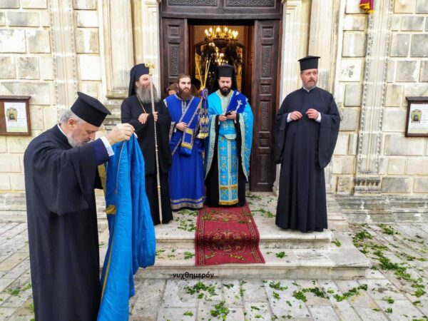 Χθες το απόγευμα (14 Αύγουστου 2020), στον πανηγυρικό Αρχιερατικό εσπερινό, στον Ναό της Φανερωμένης, όπου προΐσταται ο π. Σεραφείμ Κονίδης, χοροστάτησε ο Σεβασμιώτατος Μητροπολίτης Ζακύνθου κ. Διονύσιος Δ΄ και συμπροσευχήθηκε ο Σεβ. Μητροπολίτης Δωδώνης κ. Χρυσόστομος.